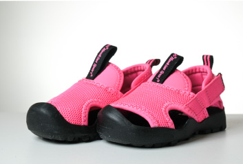 スニーカーのまま入られるとママたちも「ギャーッ!」となりますが(笑)これなら水陸両用、いつでもどうぞ♪つま先も丸まっていて子どもがこける心配もありません。