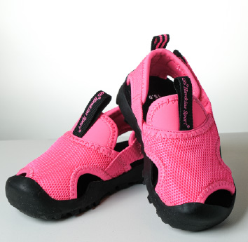 キッズ用の水陸両用サンダル。滑りにくいソールやつま先ガードで水遊びも安心です。