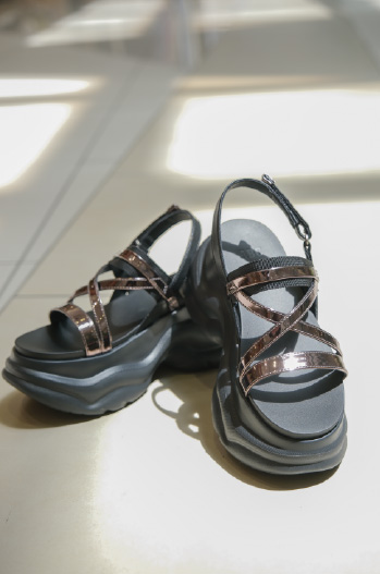 今年もトレンドの厚底サンダル。スポーツソールで歩きやすい。