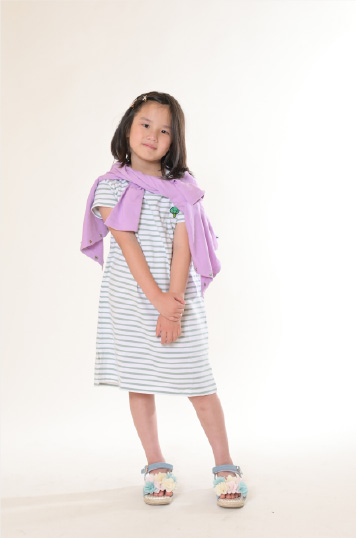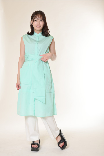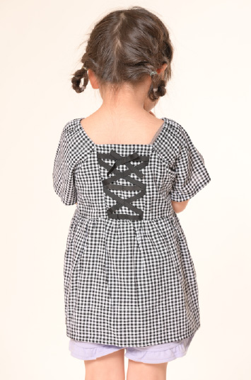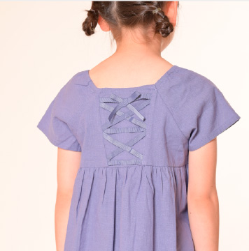 親子リンクもできるフレンチリネンシリーズ。後ろのレースアップ風デザインがポイントです。リネンなのに洗濯機で洗えて、UVカット、吸水速乾、抗菌防臭機能付き。