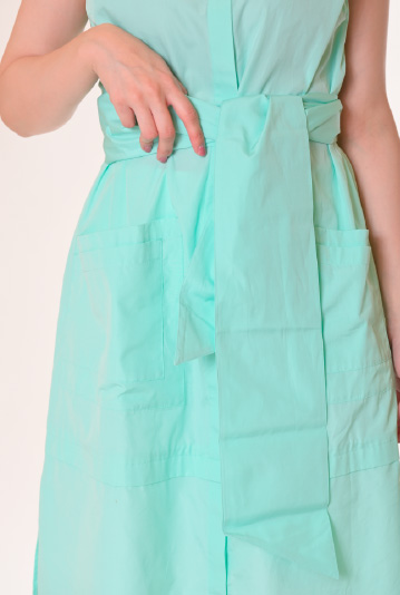ママコーデは太めのベルトが可愛いワンピースを主役に。ベルトは結び方を変えてアレンジも楽しめます。ひざが隠れる丈感で体型カバーもかなっちゃう。軽くて涼しいから、夏の間中活躍してくれそうです。