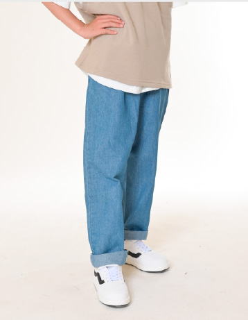 細身パンツでもワイドパンツでもバランスよく決まります。