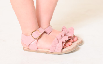 フリルデザインがかわいいキッズサンダル。ブラックなら大人っぽく、ピンクならかわいらしく♪