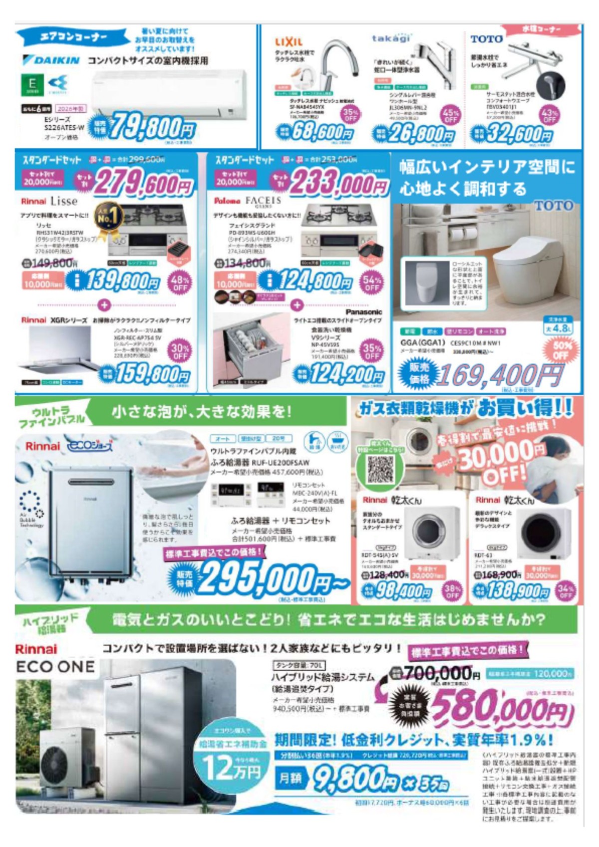 ビルトインコンロ・給湯器・トイレ・エアコン・ポータブル電源など、