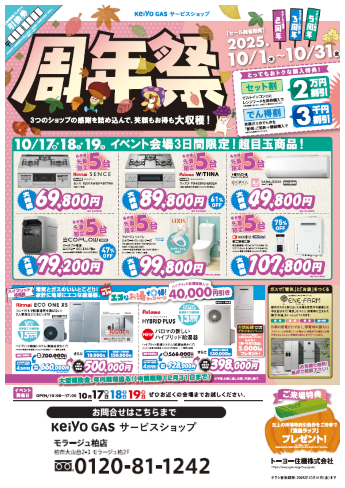 なお、周年祭は10月1日(水)から10月31日(金)まで店舗にて開催中です。