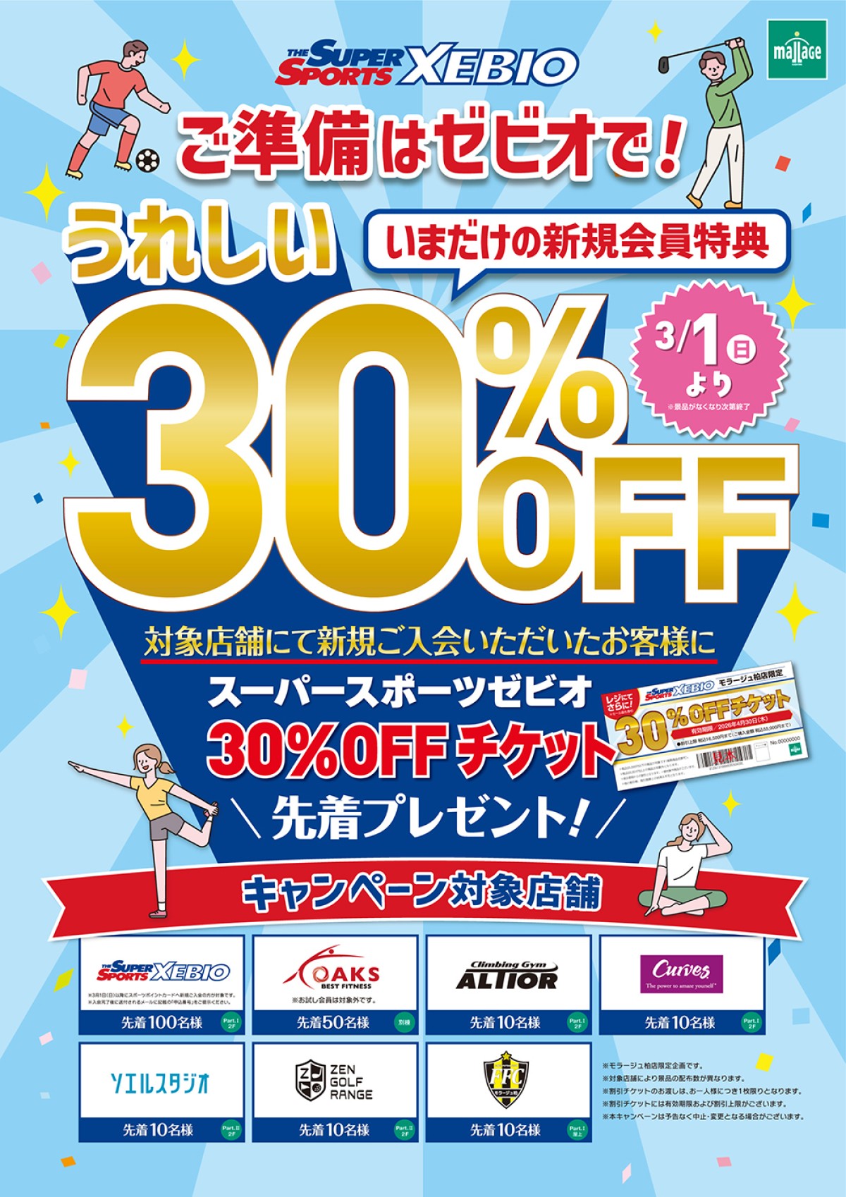 スーパースポーツゼビオ 新規会員特典 30%OFFチケット先着プレゼント!