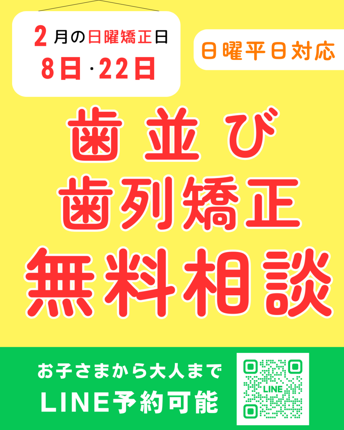 2月の日曜矯正のご案内🦷✨