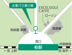 JR柏駅西口より路線バスが運行されておりますので、どうぞご利用ください。