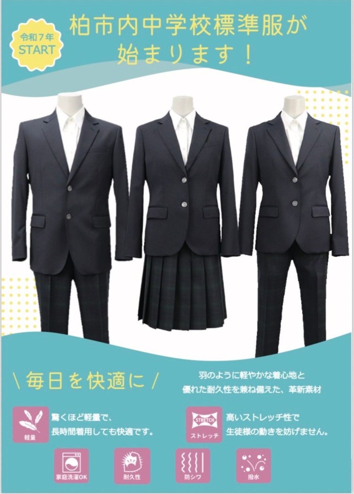 柏市近郊の公立中学・高校の制服と小学校・中学校の体操服、カバン、上履きなどを取り扱いしています。