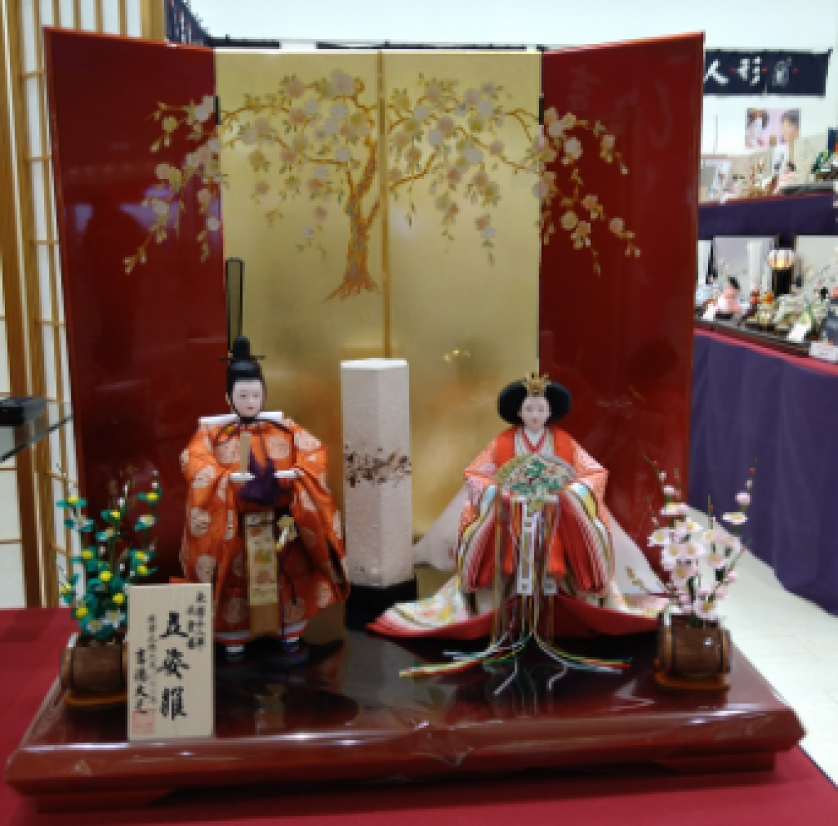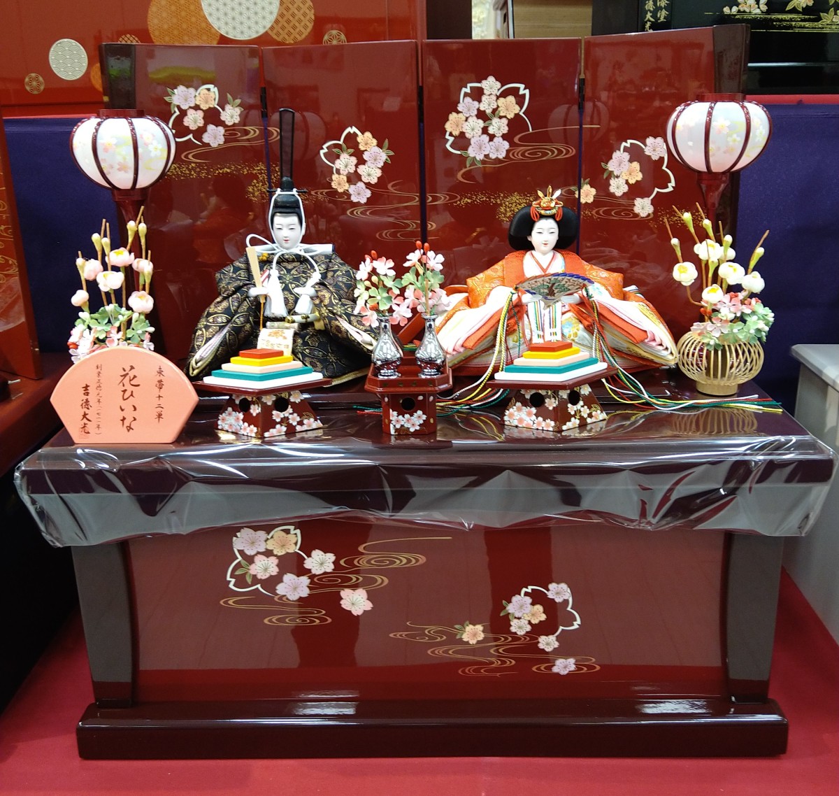 屛風と飾り台に会津塗を施した豪華な飾りです。