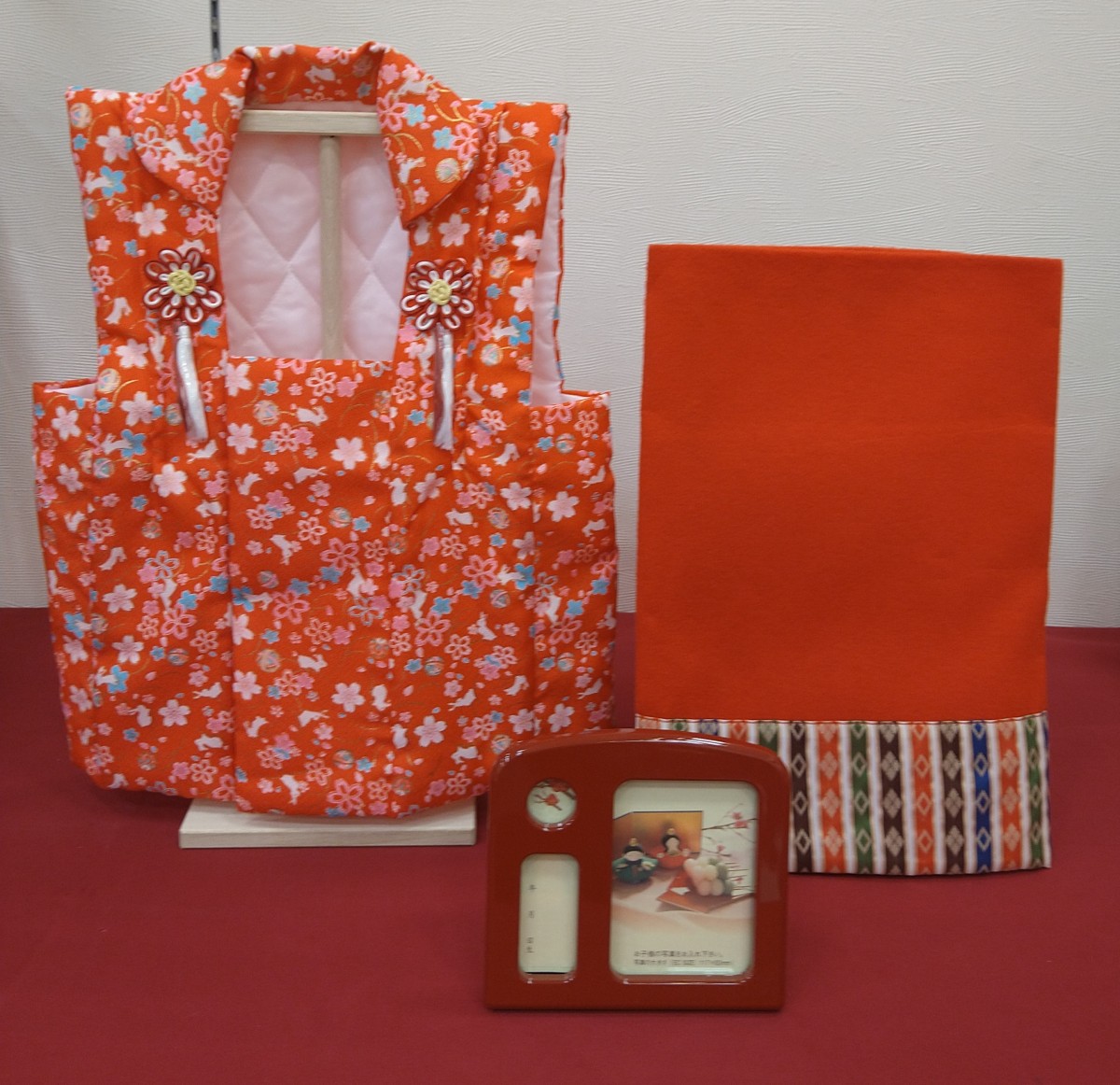被布、毛せん、オルゴール付写真立ての3点セットをプレゼントいたします。