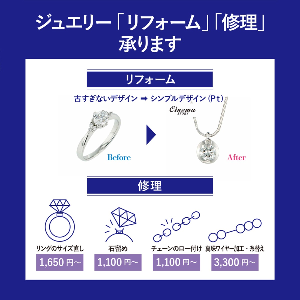 ジュエリー「リフォーム」「修理」は是非お任せください。