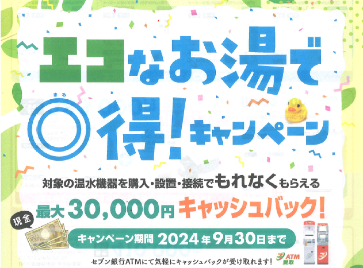 エコジョーズふろ給湯器ご購入の場合…5,000円キャッシュバック