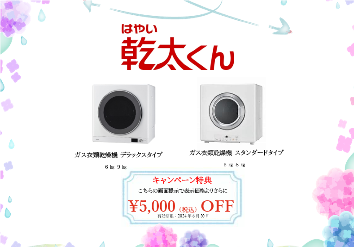 この時期の洗濯物のお悩みをガス衣類乾燥機「乾太くん」で事前に対策をしませんか?