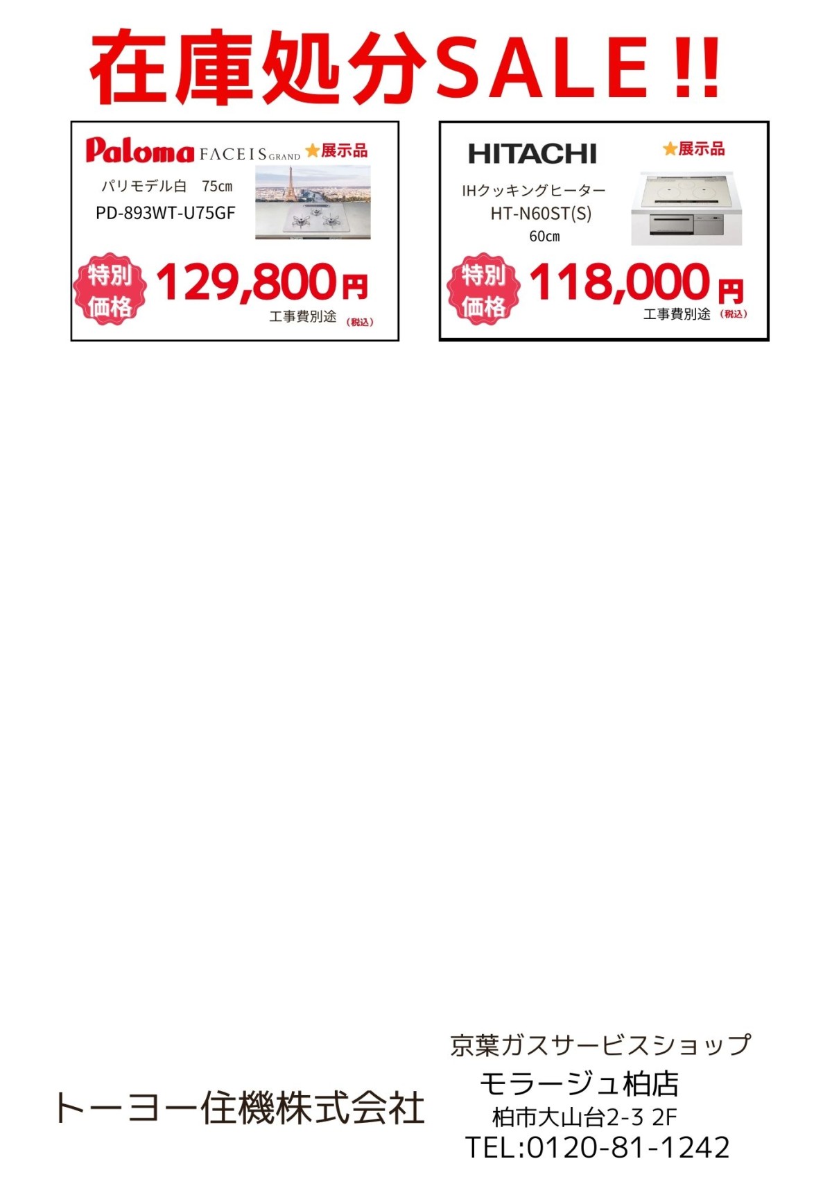 この他にも多数商品特別価格にてご用意しておりますので、ぜひ京葉ガスサービスショップにお越しください☺!
