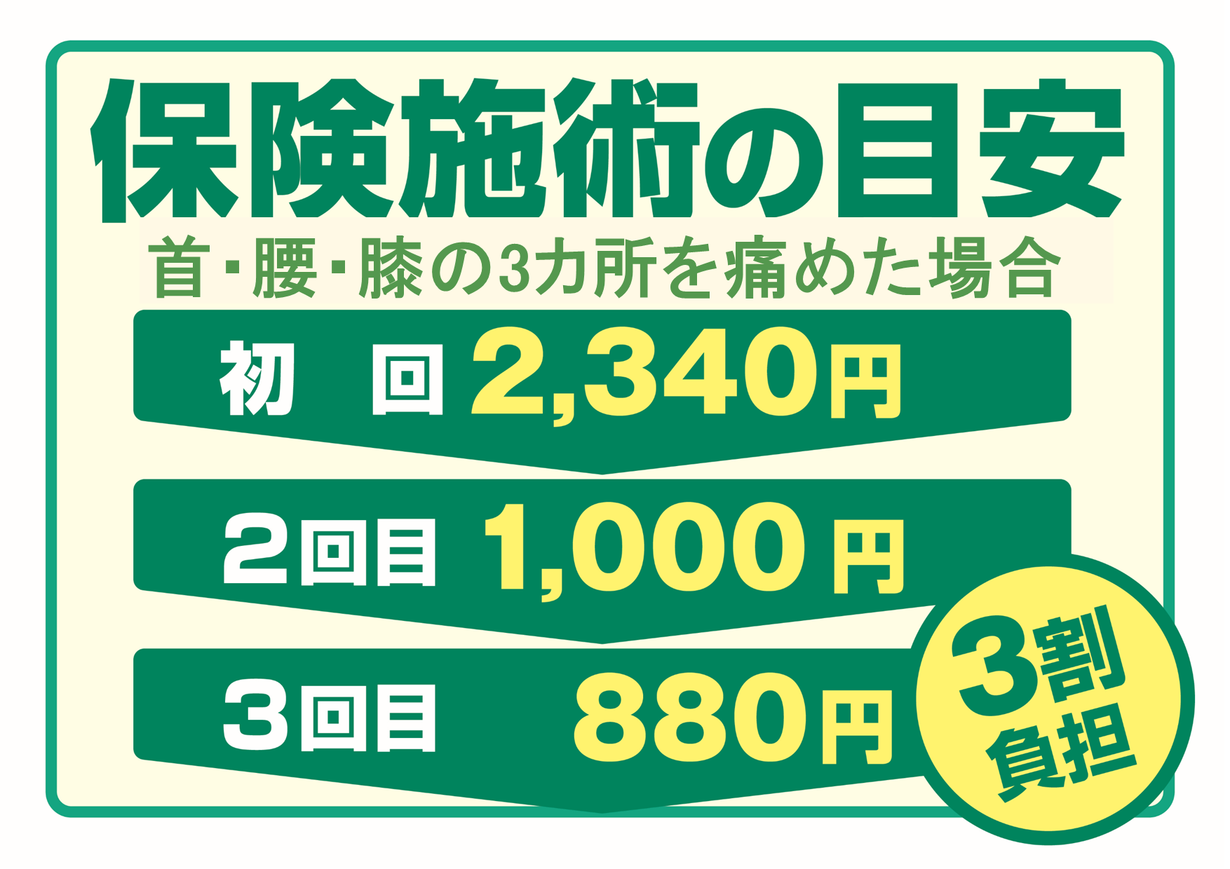 3割負担で、腰と肩と膝の3カ所を施術する場合、